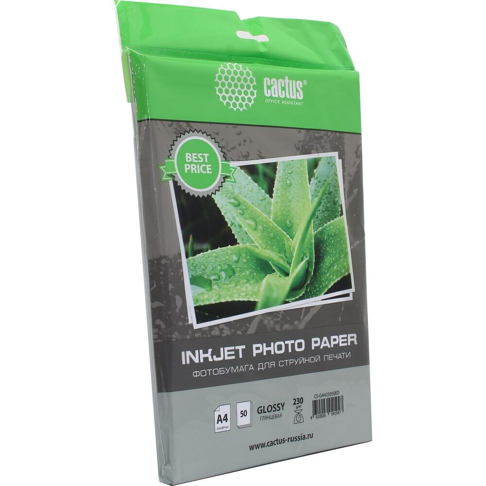 Фотобумага Cactus A4 глянцевая, 230г/м2, 50л, белая для струйной печати CS-GA423050ED