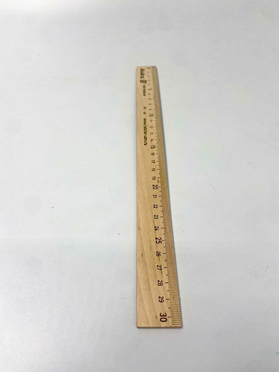 Длинная, 31см Недостатки: Дерево, можно заслужить занозу. Нормальная линейка |