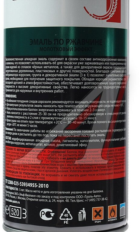 | Отзыв: | Краска спрей с интересным молотковым эффектом. |
