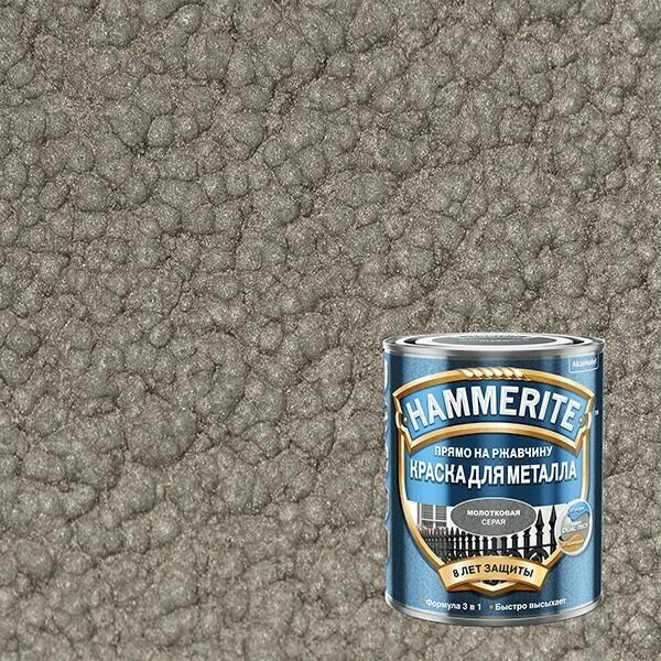 Краска Hammerite молотковая Серая 0,5 л. по металлу 3 в 1