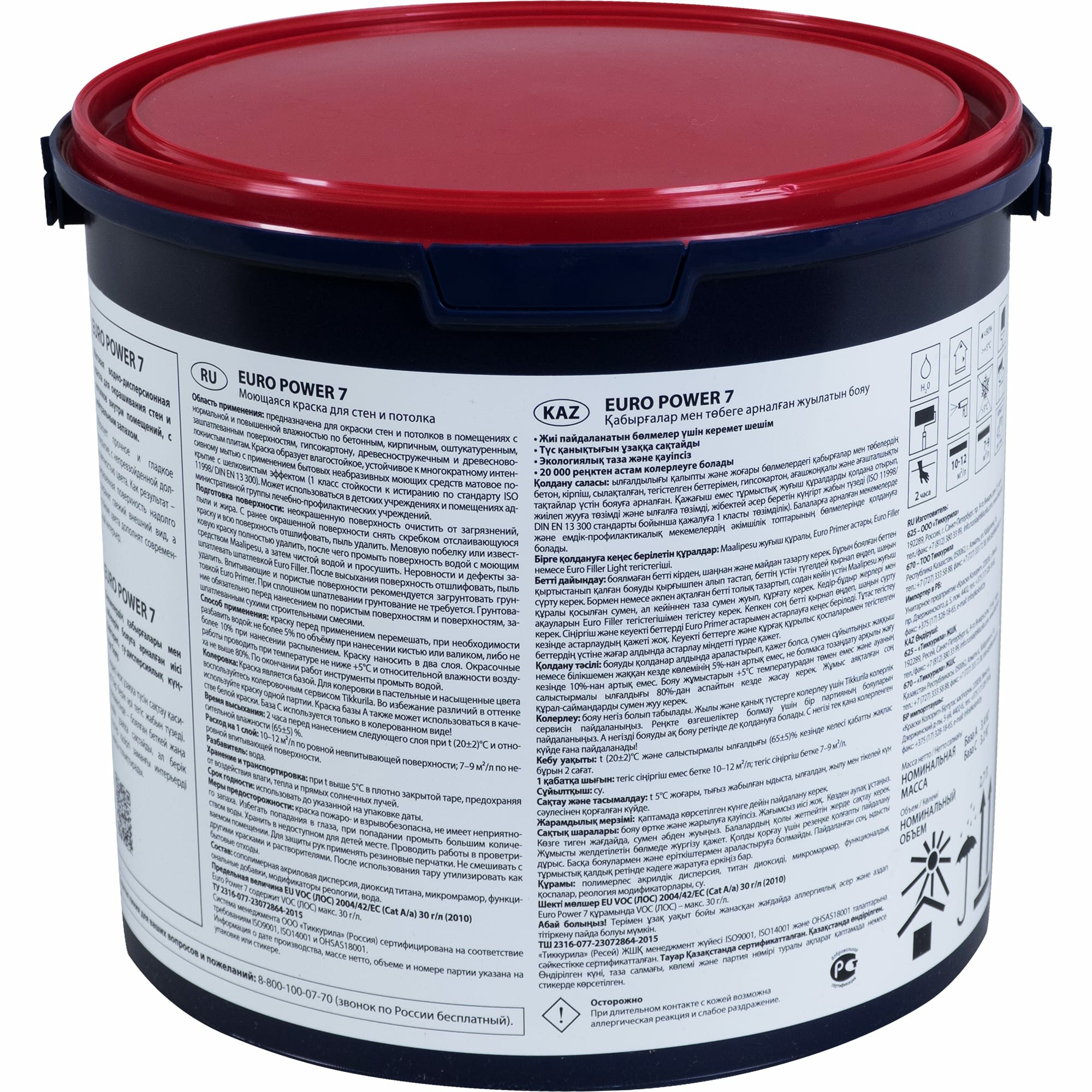 TIKKURILA EURO POWER 7 краска моющаяся для стен и потолка, матовая, база A (2,7л)