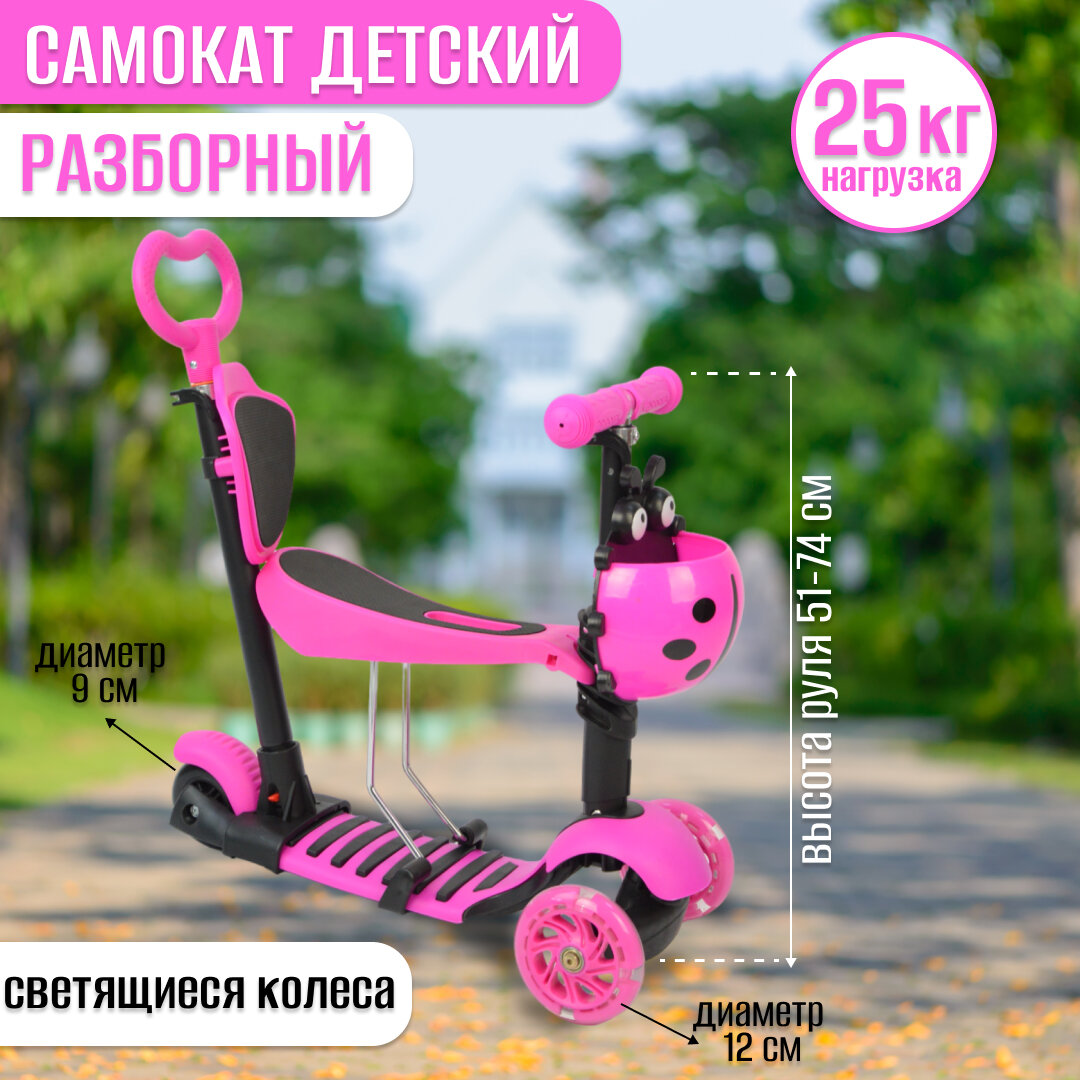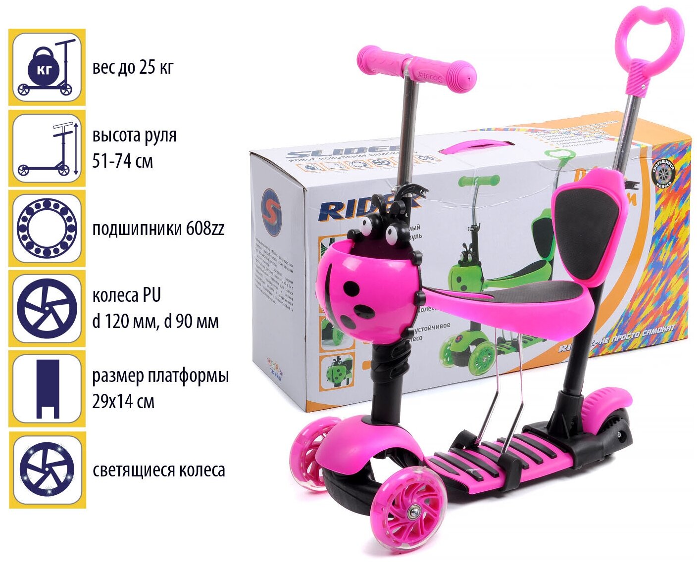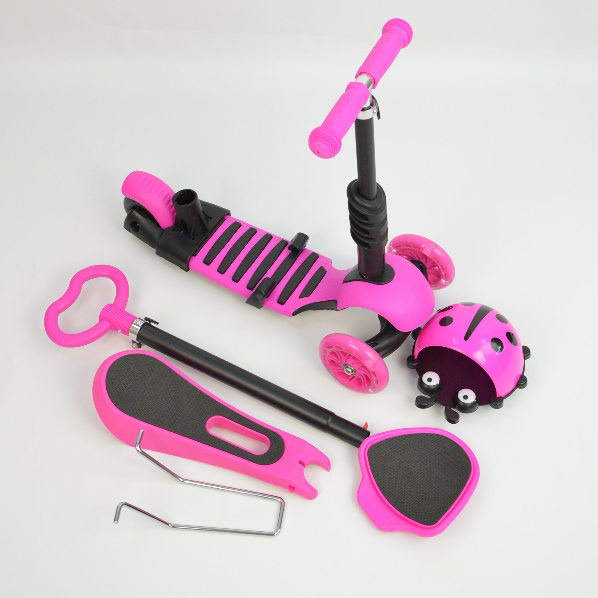 Самокат Slider, Божья коровка, 5 в 1, 3-х колесный, светящиеся колеса, розовый