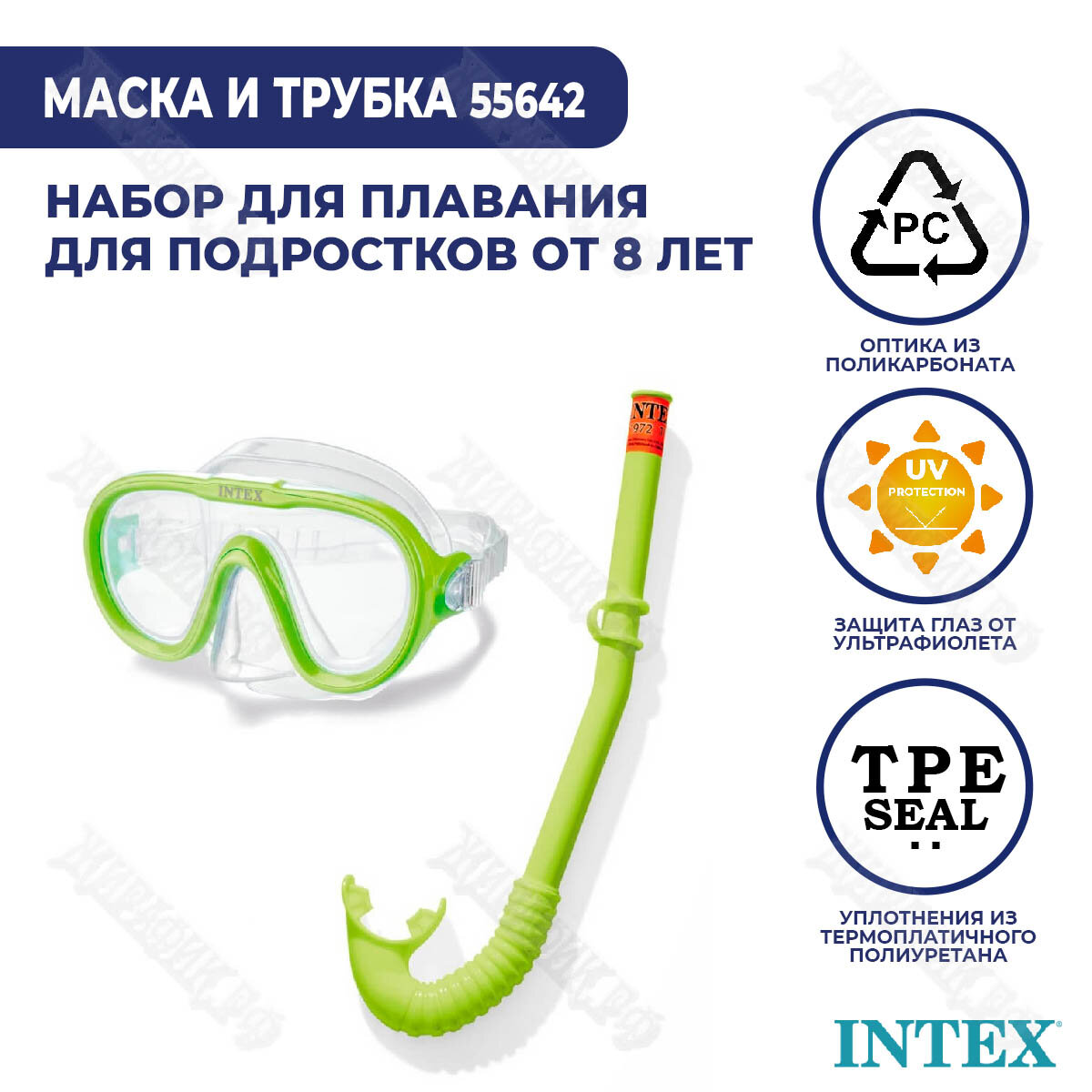 Набор для подводного плавания «Искатель приключений», маска, трубка, от 8 лет, 55642 INTEX. В наборе 1шт.