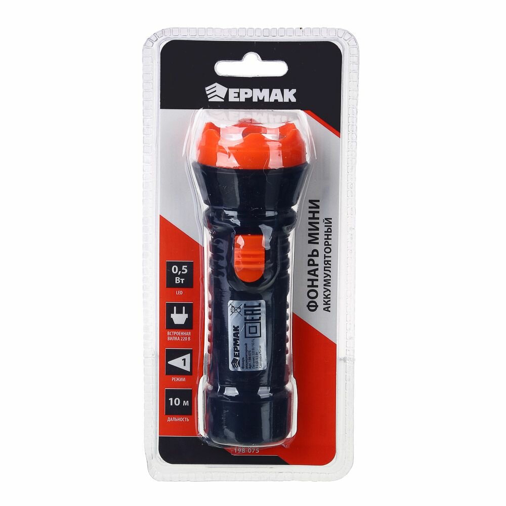Фонарь аккумуляторный 4,3*12,3см пласт. (1 LED, 220В)