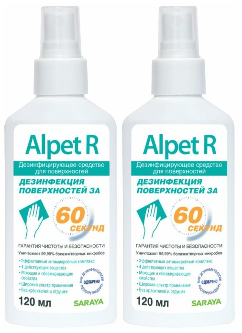 Комплект Дезинфицирующее средство Alpet R (Алпет Р) 120 мл. спрей х 2 шт.