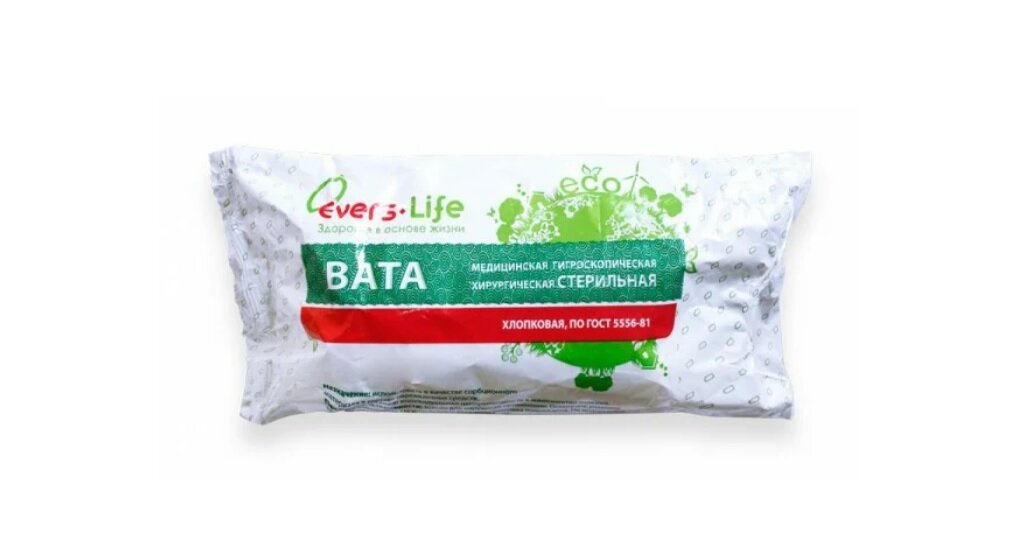 Вата медицинская EVERS Life гигроскопическая хирургическая стерильная 100 гр.