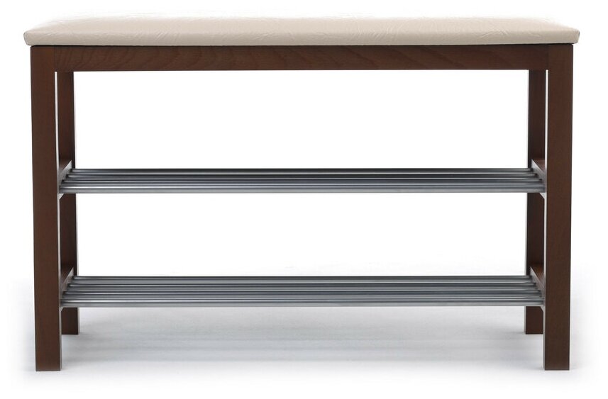 Банкетка-полка для обуви SR-0628, 760х310х490 мм, 2 отделения, дерево/металл, темный орех/хром