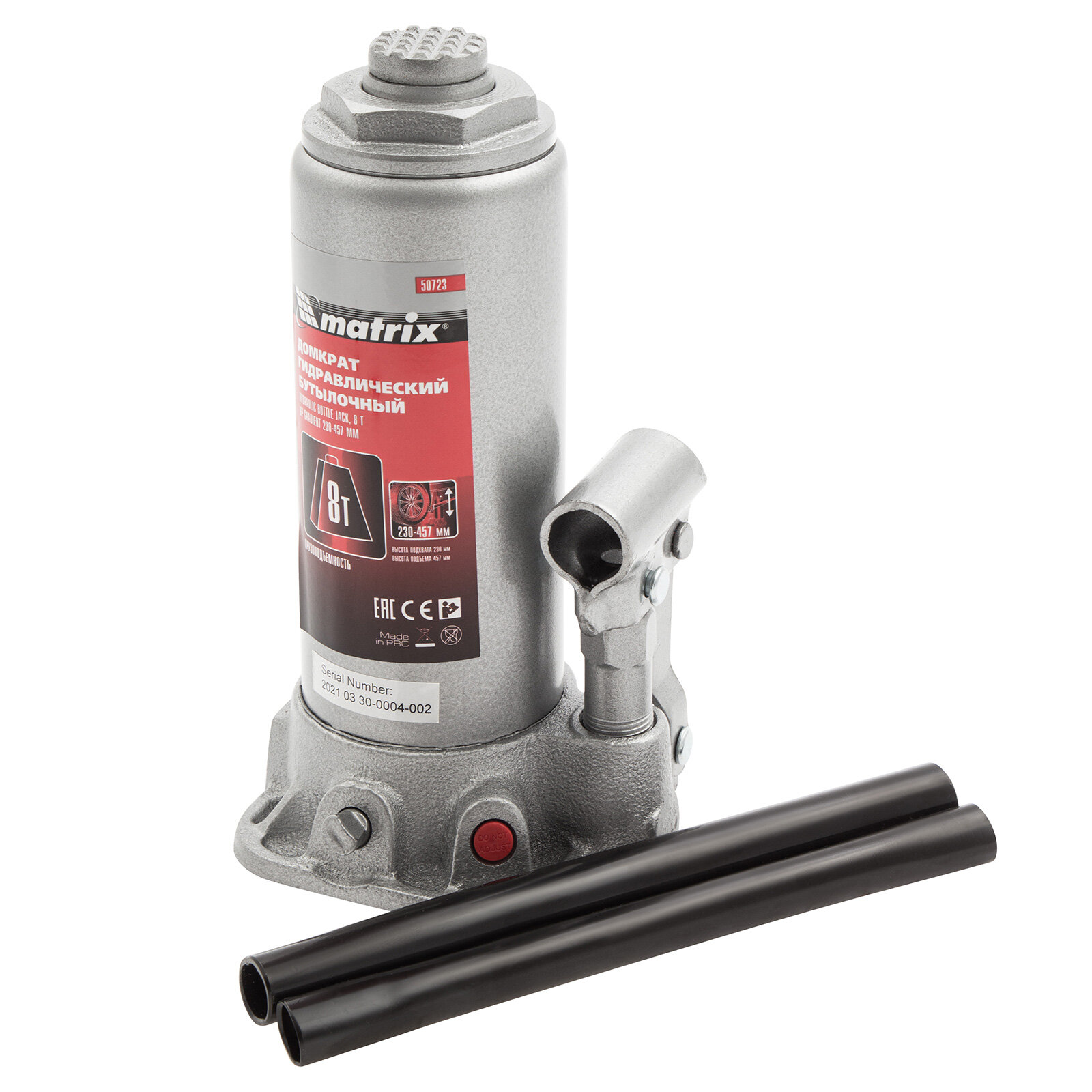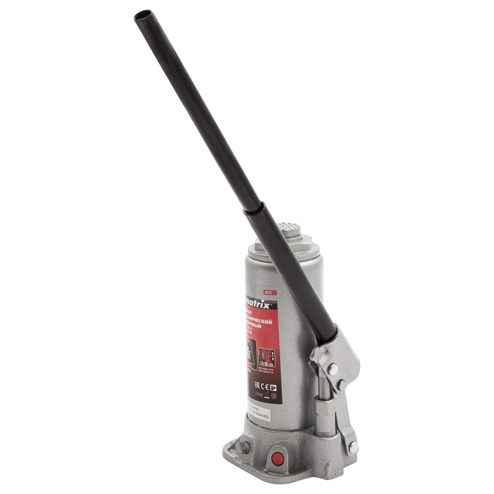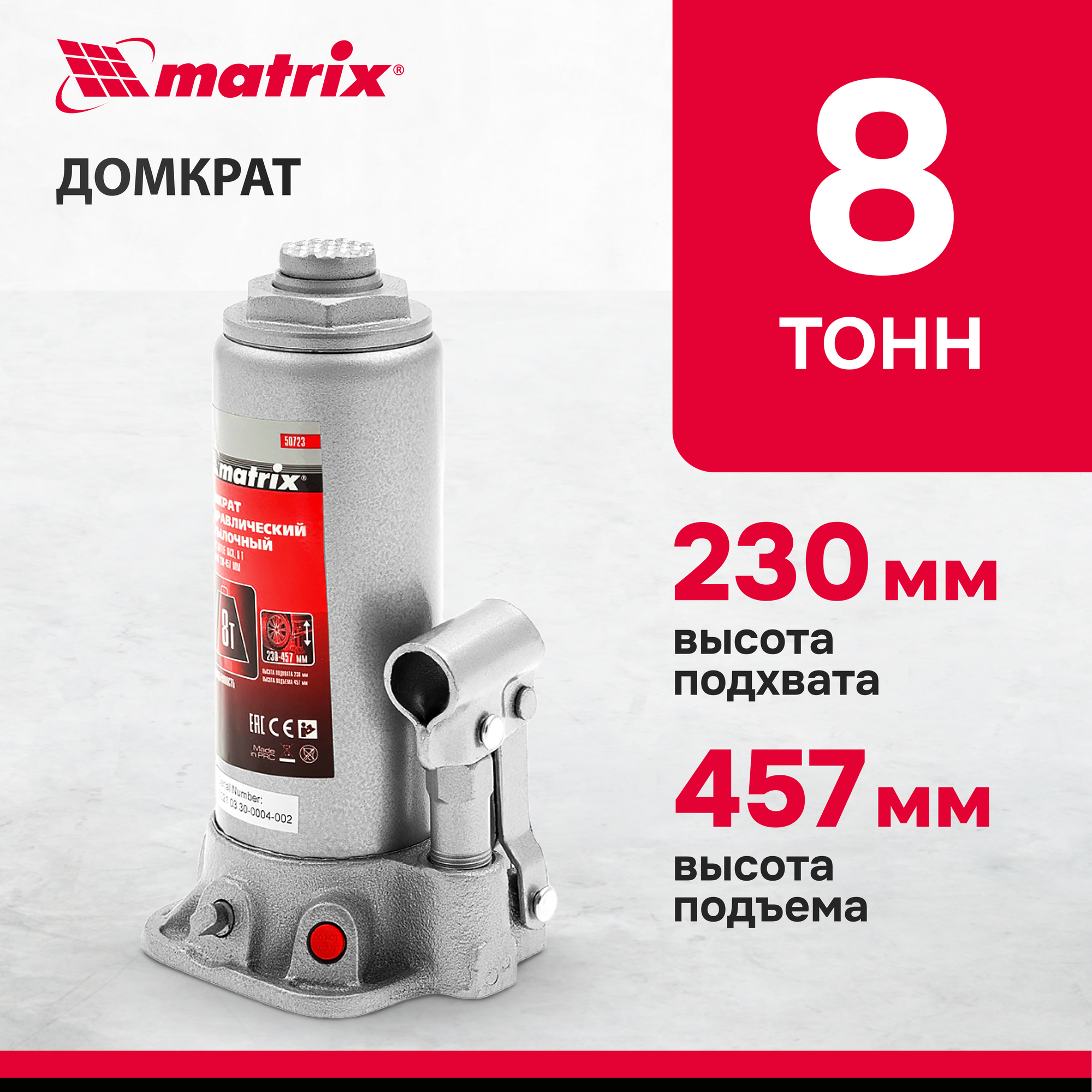 Домкрат гидравлический бутылочный MATRIX 50723, 8 т, h подъема 230–457 мм