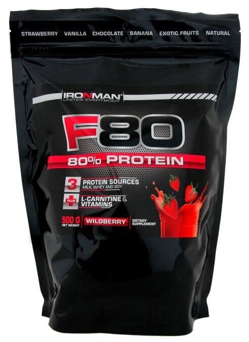 Протеин IRONMAN F80, 500 гр., земляника