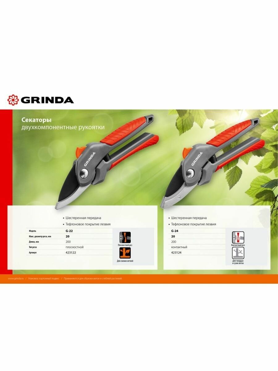 G-24 Секатор с двухкомпонентными рукоятками, контактный, 200 мм, GRINDA