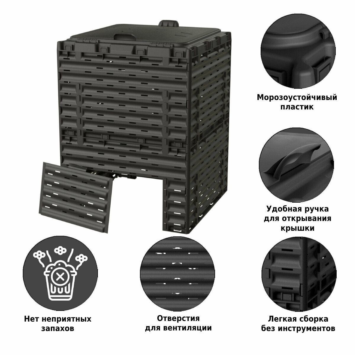 Компостер Piteco с крышкой 300 л чёрный К1130 интересное: