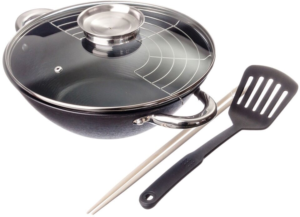 | Плюсы: | Емкий, решетка очень удобное приспособление что бы готовить на пару.китайские палочки и лопатка как еще один хороший бонус. |