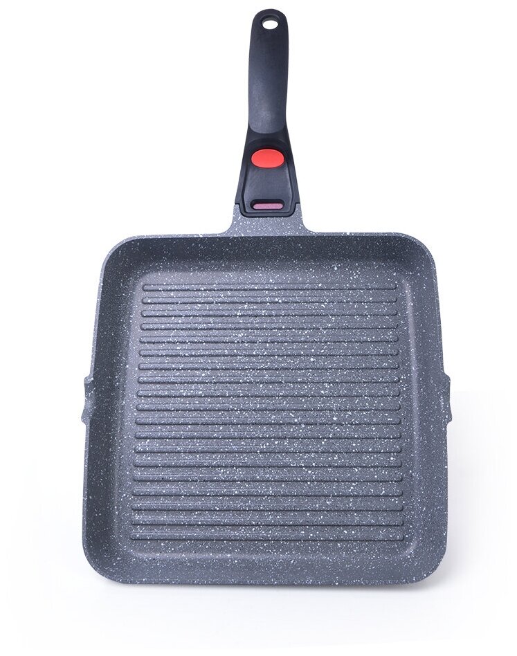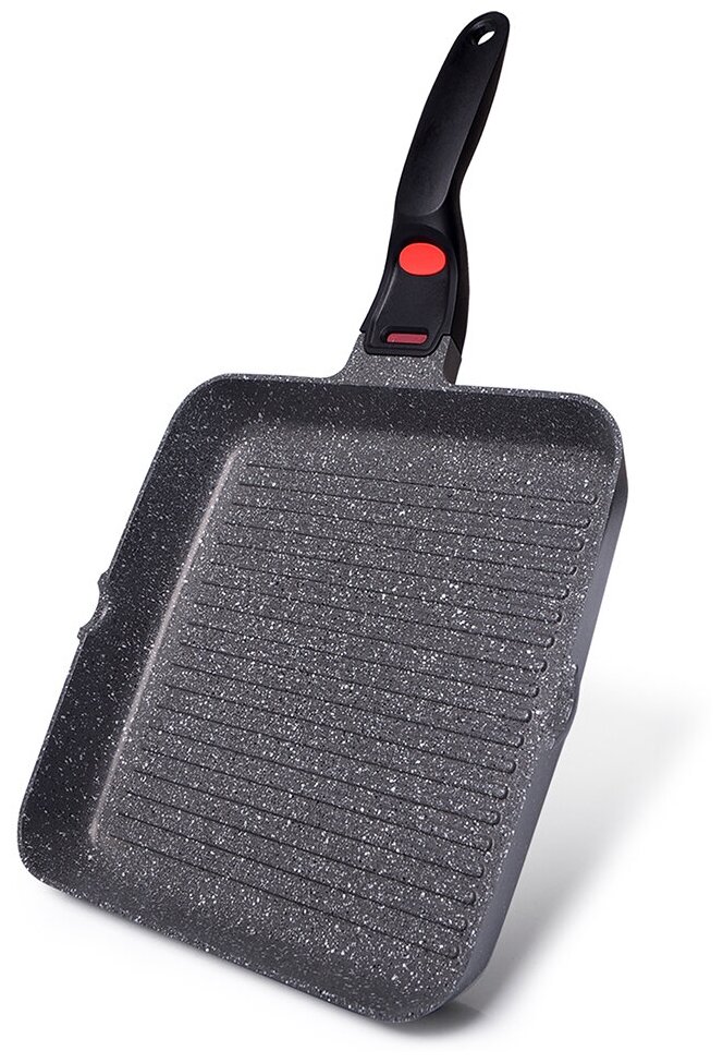 4628 FISSMAN Сковорода-гриль LA GRANITE 28x4,5см Квадратная со съемной ручкой и температурной меткой (алюминий с антипригарным покрытием TouchStone) Ручка-бакелит; Индукция