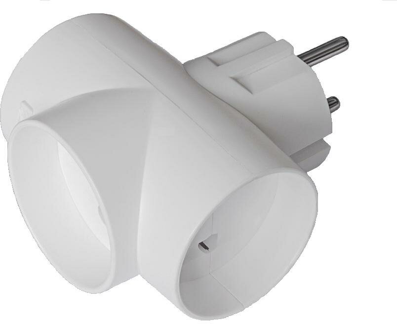 Тройник для розетки электрический с заземлением 16А, белый