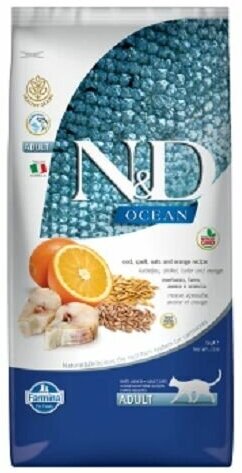 Сухой корм Farmina N&D Ocean Godfish&Orange Adult, для взрослых кошек, низкозерновой, треска, спельта, овес и апельсин, 5 кг