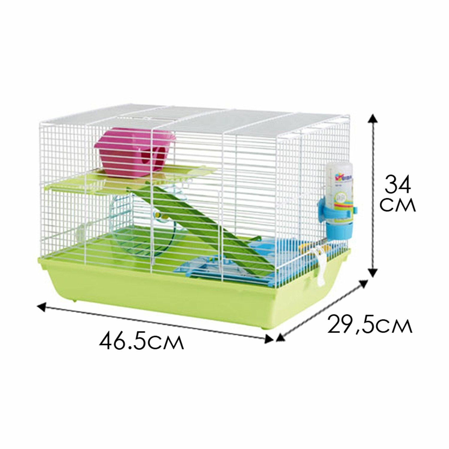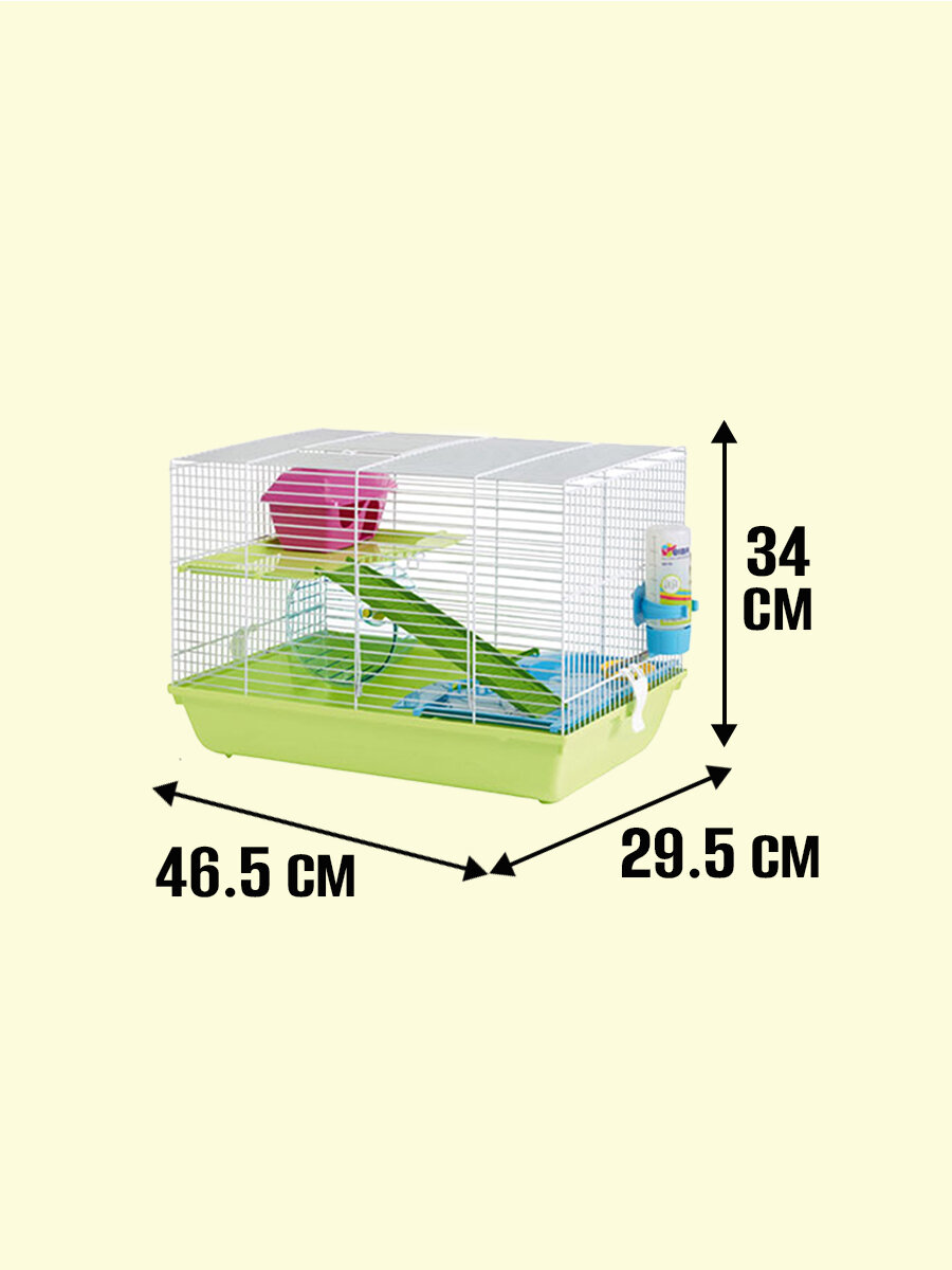 | Минусы: | Тонкие прутья у клетки, краска буквально сразу облезла в местах где закрывается. Полки двигаются, ночью когда хомяк ведёт активный образ жизни, все гремит, так как полки не закреплены. Лестница держится на двух малюсеньких креплениях которые вылетают и она отваливается, утром приходится наводить в клетке порядок. Очень пожалели о покупке. Планируем выбирать другую клетку, желательно где этажи хорошо зафиксированы и вместо лестницы труба, потому что для хомяка это ещё и безопаснее. |