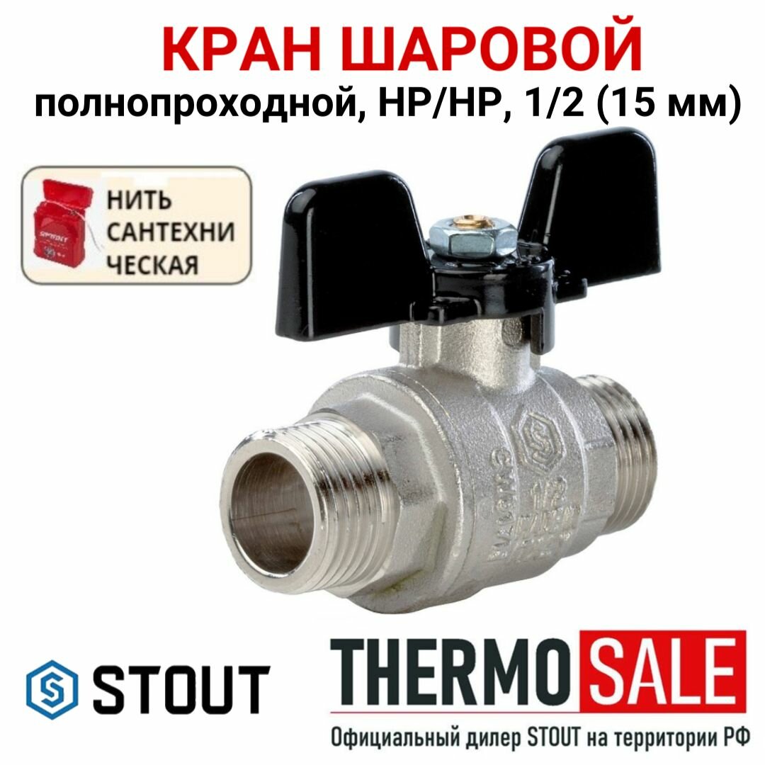 Кран шаровой STOUT полнопроходной, НР/НР 1/2" (ручка бабочка) , art. SVB-0006-000015