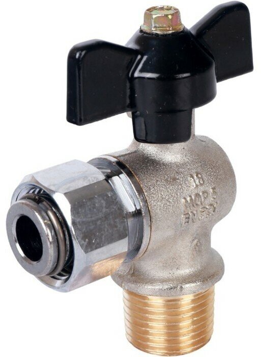 Кран шаровой Stout 1/2 НР(ш) х 1/2 ВР(г) бабочка с накидной гайкой угловой (SVB-0010-000015)