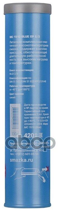 Смазка Мс-1510 Литиевая Высокотемпературная Blue, 420Гр. Картридж Вмпавто 1304 ВМПАВТО арт. 1304