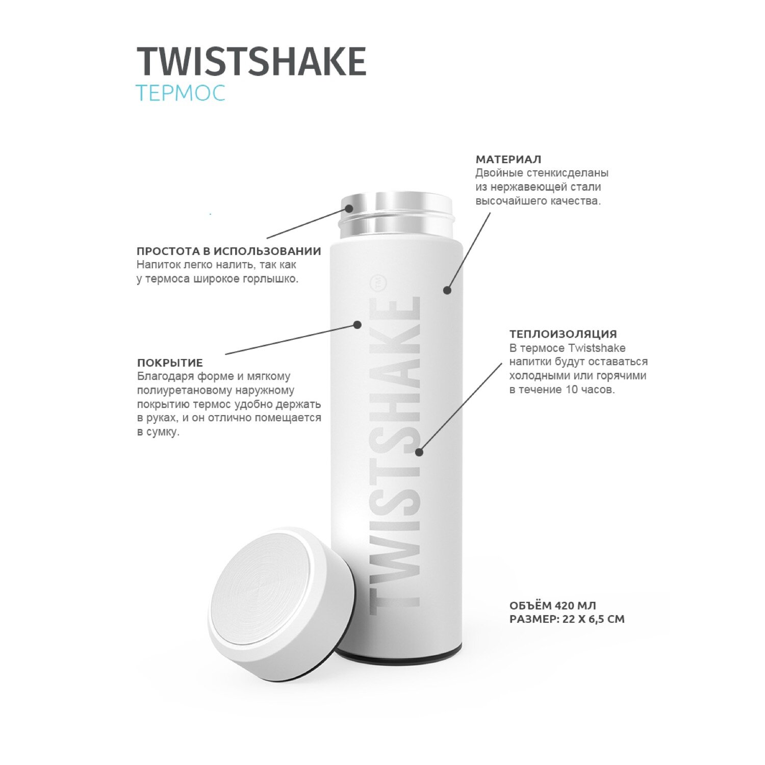 Термос детский, 420 мл. Twistshake цвет: белый