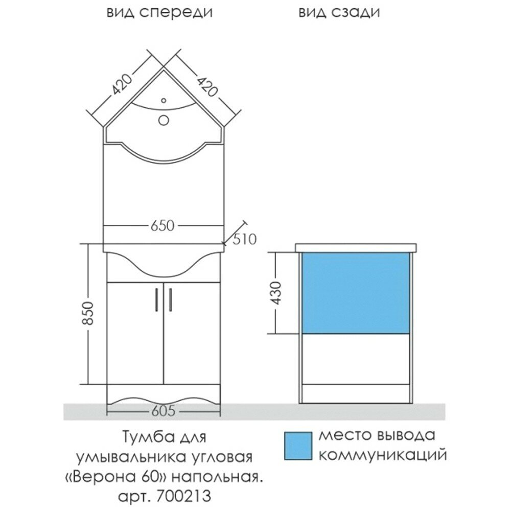 Тумба под раковину СанТа Верона 60, угловая (700213)