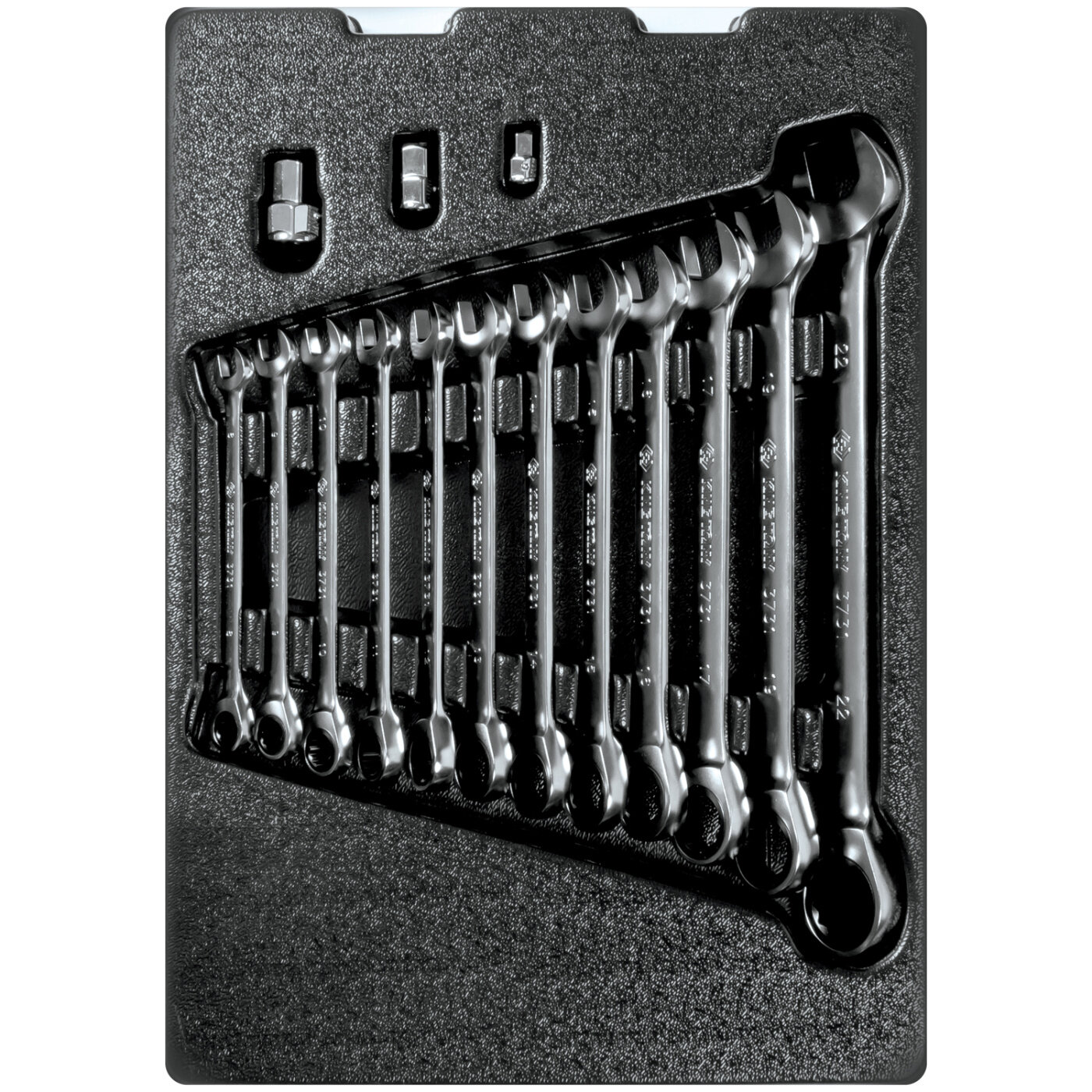 Набор трещоточных комбинированных ключей, ложемент, 15 предметов