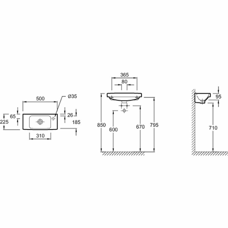 Раковина Jacob Delafon Odeon Up 50х22,5 см E4701R-00 правая