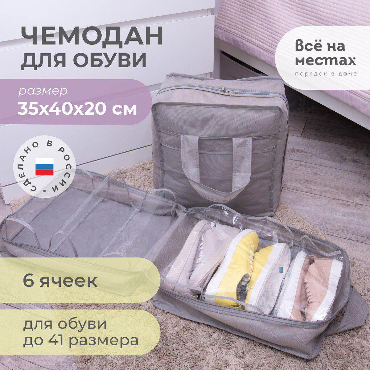 всё на местах Всё на местах Чемодан для обуви Милан, 6 ячеек, 35х40х20 см