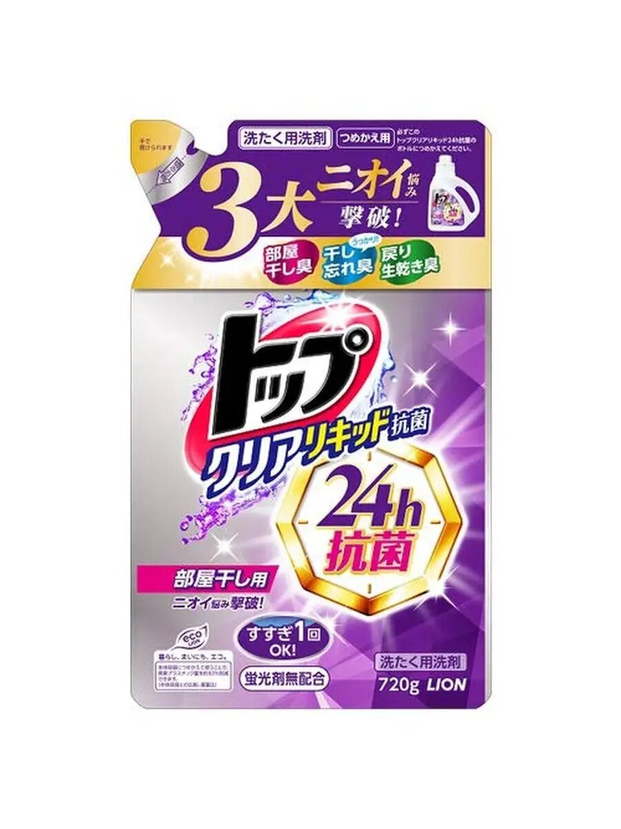Lion top clear liquid жидкое средство для стирки белья с антибактериальным эффектом "топ-сухое бельё", мягкая упаковка, 1160 гр