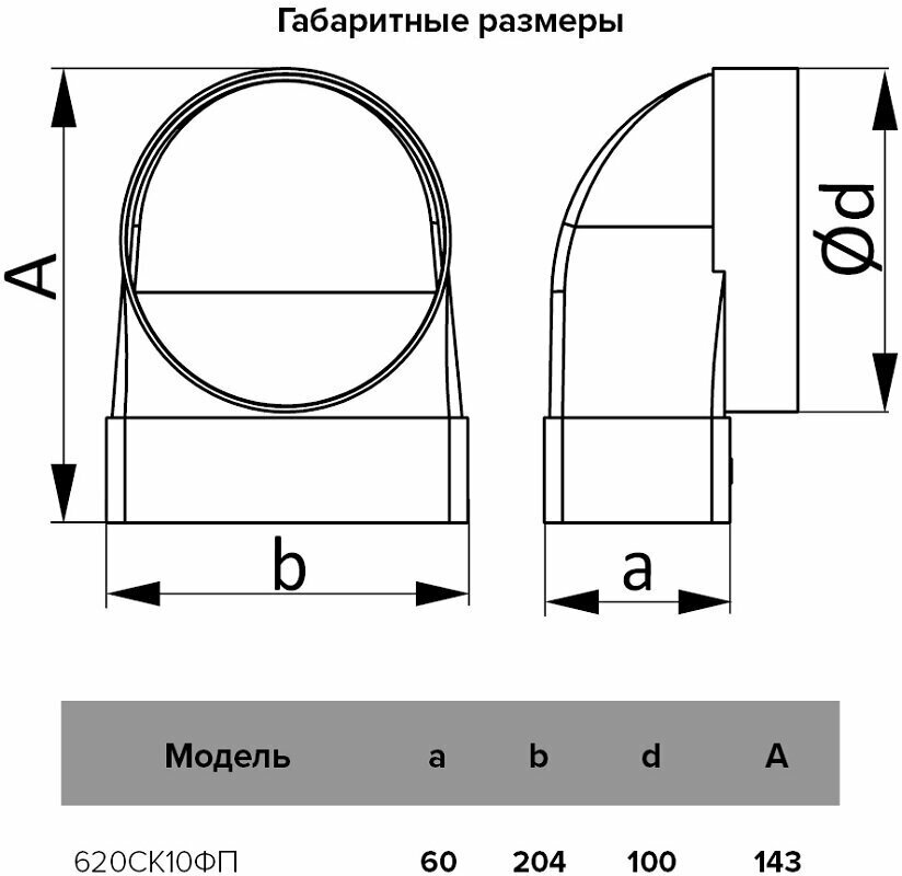 Соединитель угловой 620СК10ФП 204х60 d100 ФП проходной пластиковый