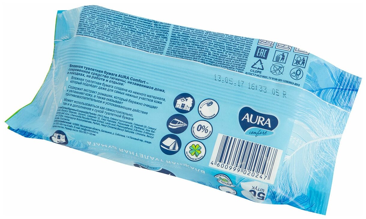 Влажная туалетная бумага Aura с ароматом ромашки/элоэ 120 шт в пачке, 1 упак