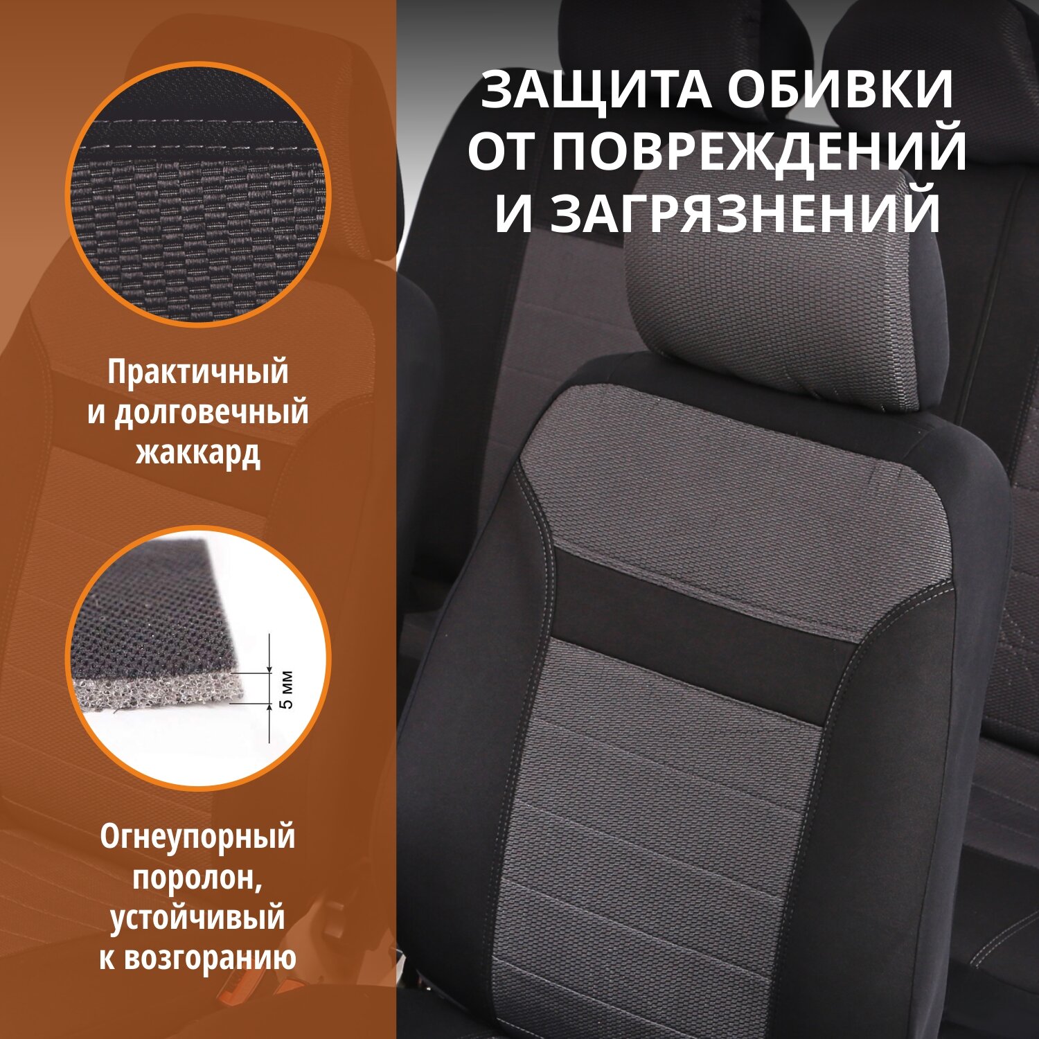 Комплект каркасных чехлов 5D CarFashion Consul Plus, чёрные, отстрочка серая