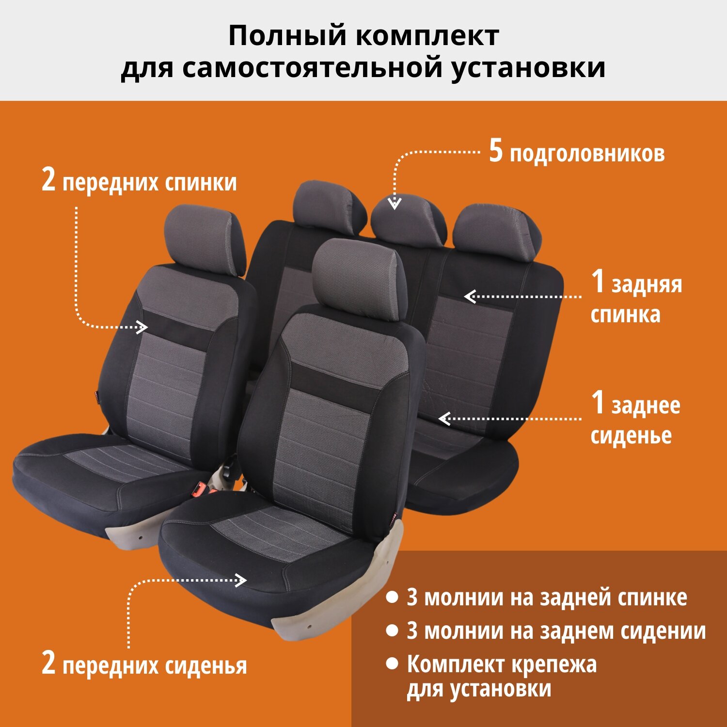 VORON GLASS SJ081162 Чехлы "SENATOR" New York (11 предм) армированный Жаккард, 6 молний, Серый