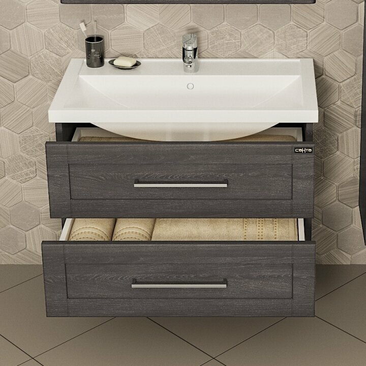 Тумба под раковину СанТа Венера 80, подвесная, дуб шале графит (221014)
