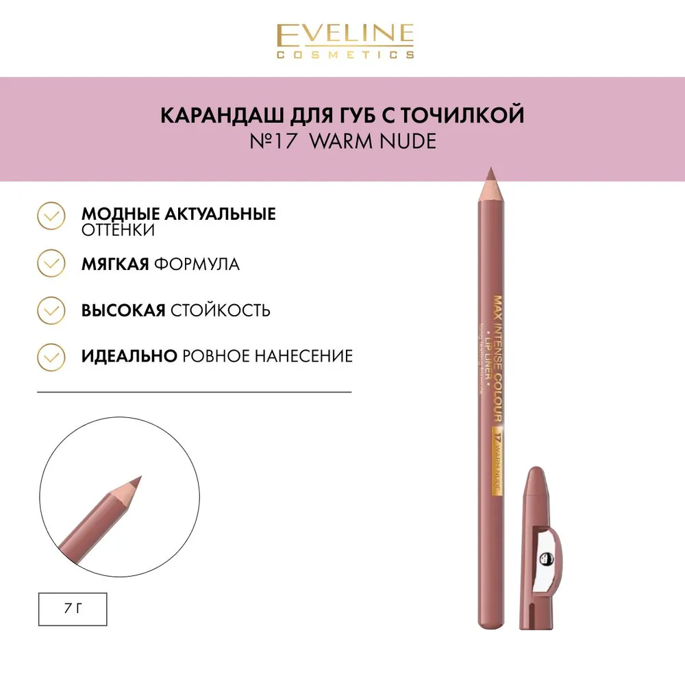 Купить EVELINE Max Intense Colour Карандаш для губ контурный №17 Warm Nude 7 г