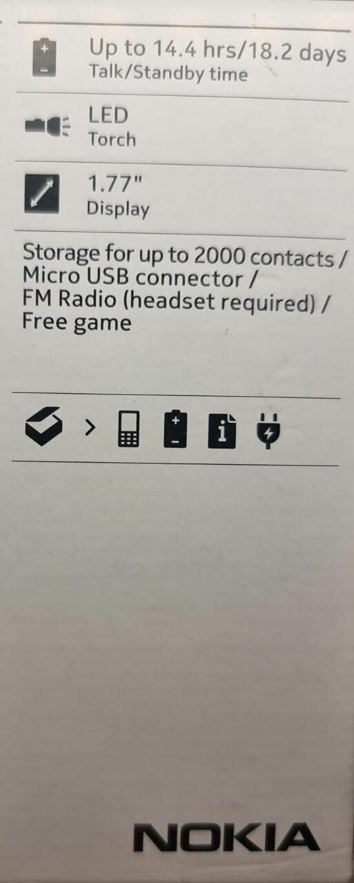 | Плюсы: | Купил маме, т.к. смартфон быстро садится, а кнопочный держит заряд долго и всегда есть связь. В руке удобно держится. Меню яркое и доступное для всех возрастов. Звук отменный. Связь почти везде ловит без проблем. Нокия есть Нокия )) |