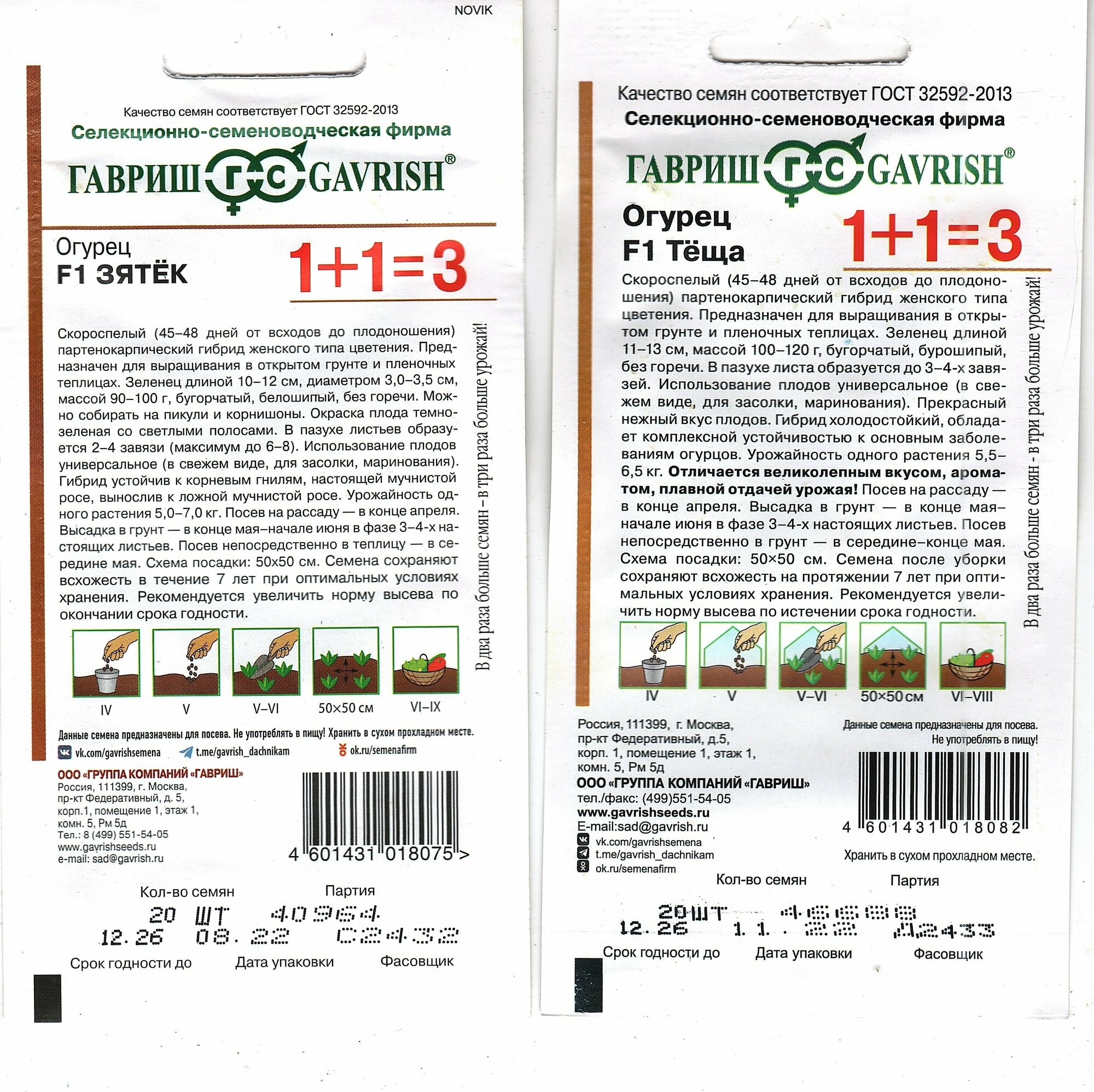 Семена Гавриш 1+1=3 Огурец Зятек F1 20шт / 1 пакет