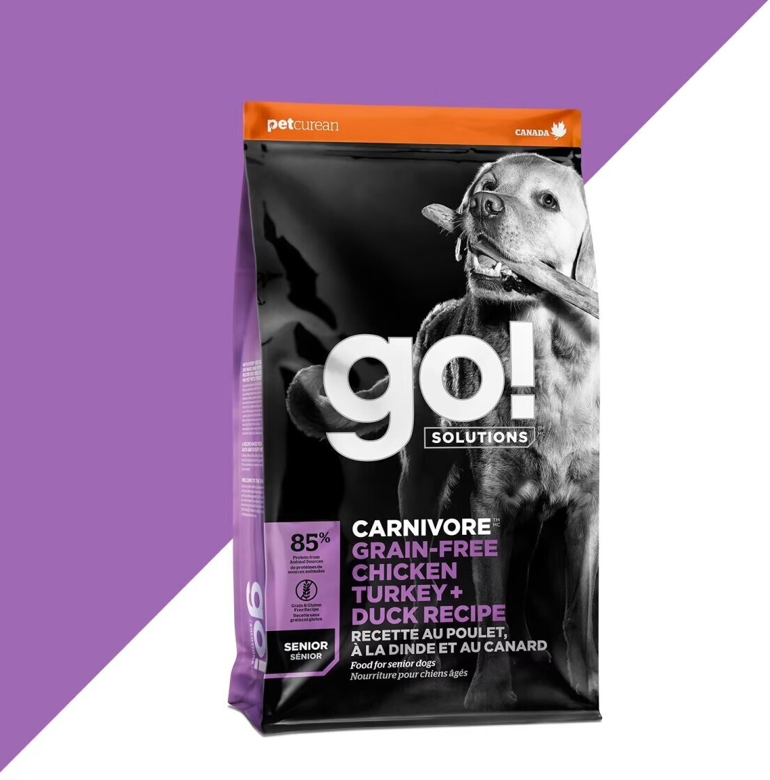 GO! для Пожилых Собак всех пород 4 вида мяса: Индейка, Курица, Лосось, Утка (GO! CARNIVORE GF Chicken,Turkey + Duck Senior Recipe DF) ) 5,44 кг