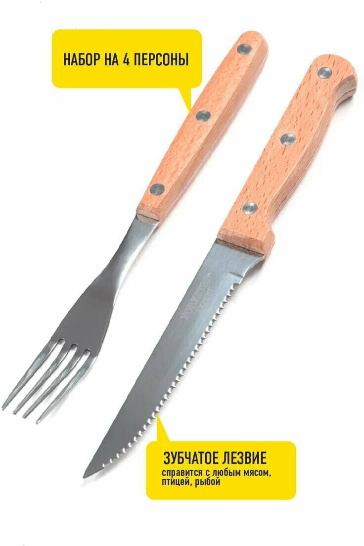 Набор столовых предметов на 4 персоны с деревянными ручками для гриля (4 ножа и 4 вилки) FORESTER C827