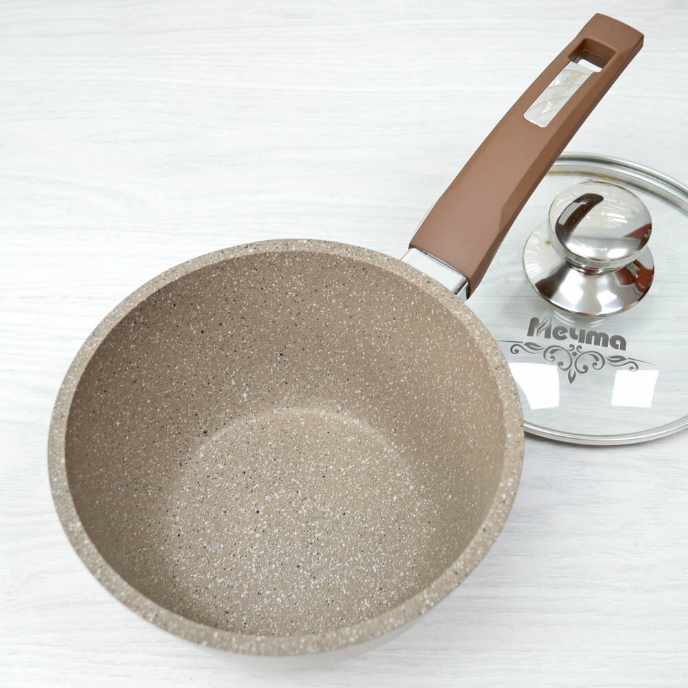 Ковш Мечта 1.7 л Гранит с антипригарным покрытием с несъемной ручкой и крышкой, НЕ индукционная