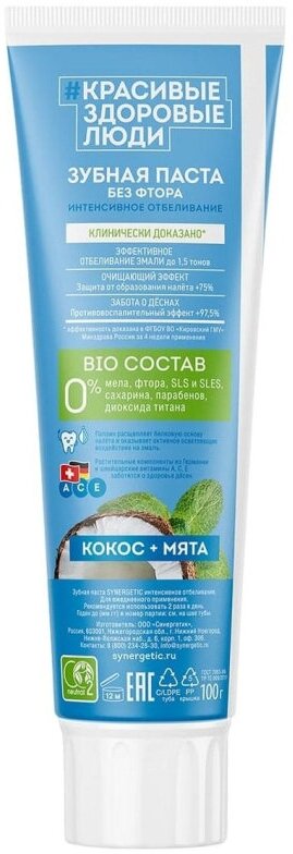 Купить Зубная паста Synergetic Красивые здоровые люди Интенсивное отбеливание, 100 г