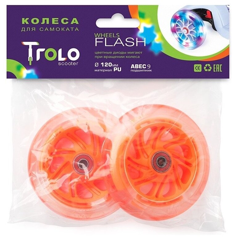 Купить Светящиеся колеса Trolo передние 120 мм (2 шт.) 120х24 мм под модель Mini Оранжевые