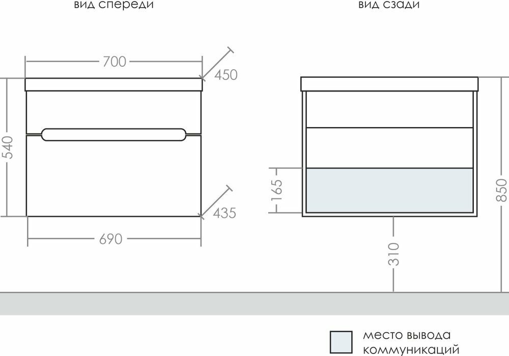 Тумба подвесная Лондон 70 2 ящика с умывальником Classic 70