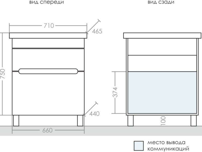 Тумба напольная Лондон 70 2 ящика с умывальником Фостер 70