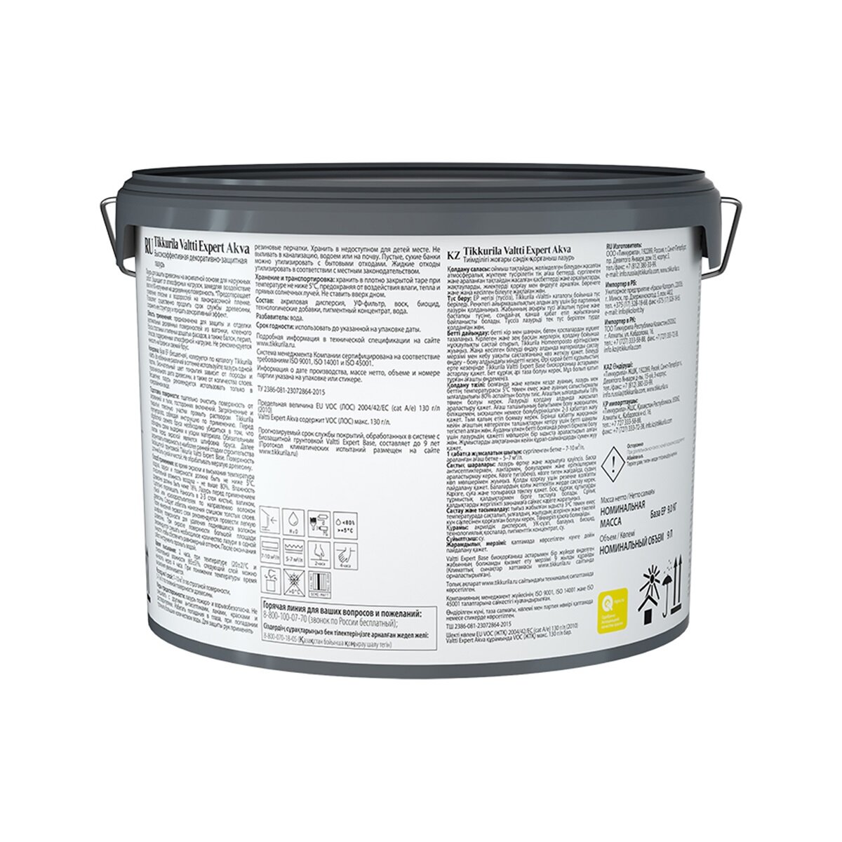 средство деревозащитное TIKKURILA Valtti Expert Akva база EP 9л бесцветное, арт.700009575