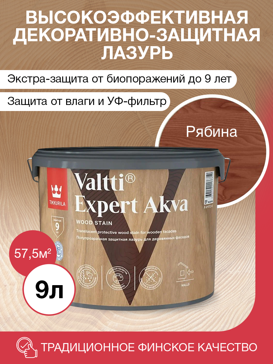 Купить Декоративный антисептик Tikkurila Valtti Expert Akva полуматовый рябина 9 л.