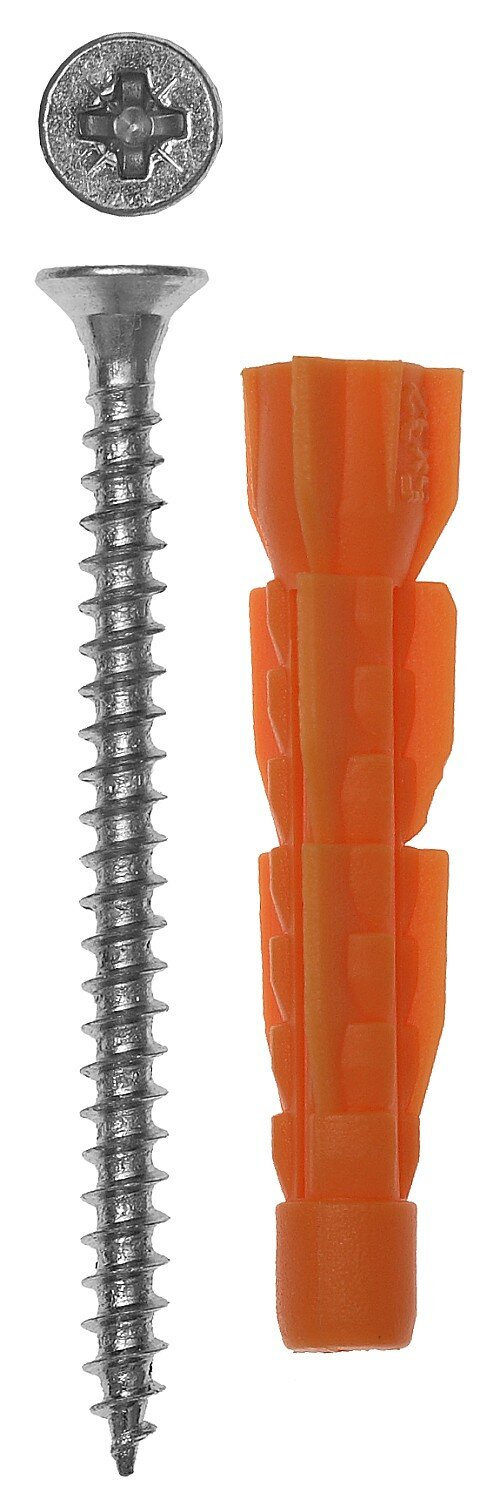 Дюбель универсальный полипропиленовый, без бортика, в комплекте с оцинкованным шурупом, 6 х 52 мм, 8 (4-301196-06-052)
