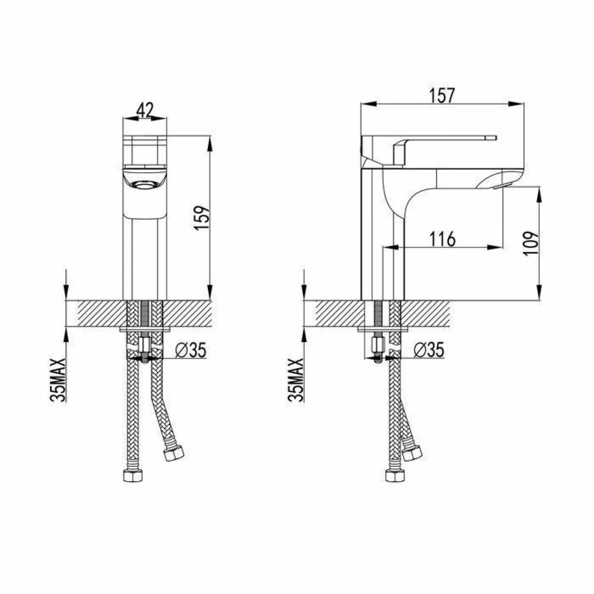 | Комплектация | смеситель - 1 шт., подводка для воды - 2 шт., комплект крепления - 1 шт., |