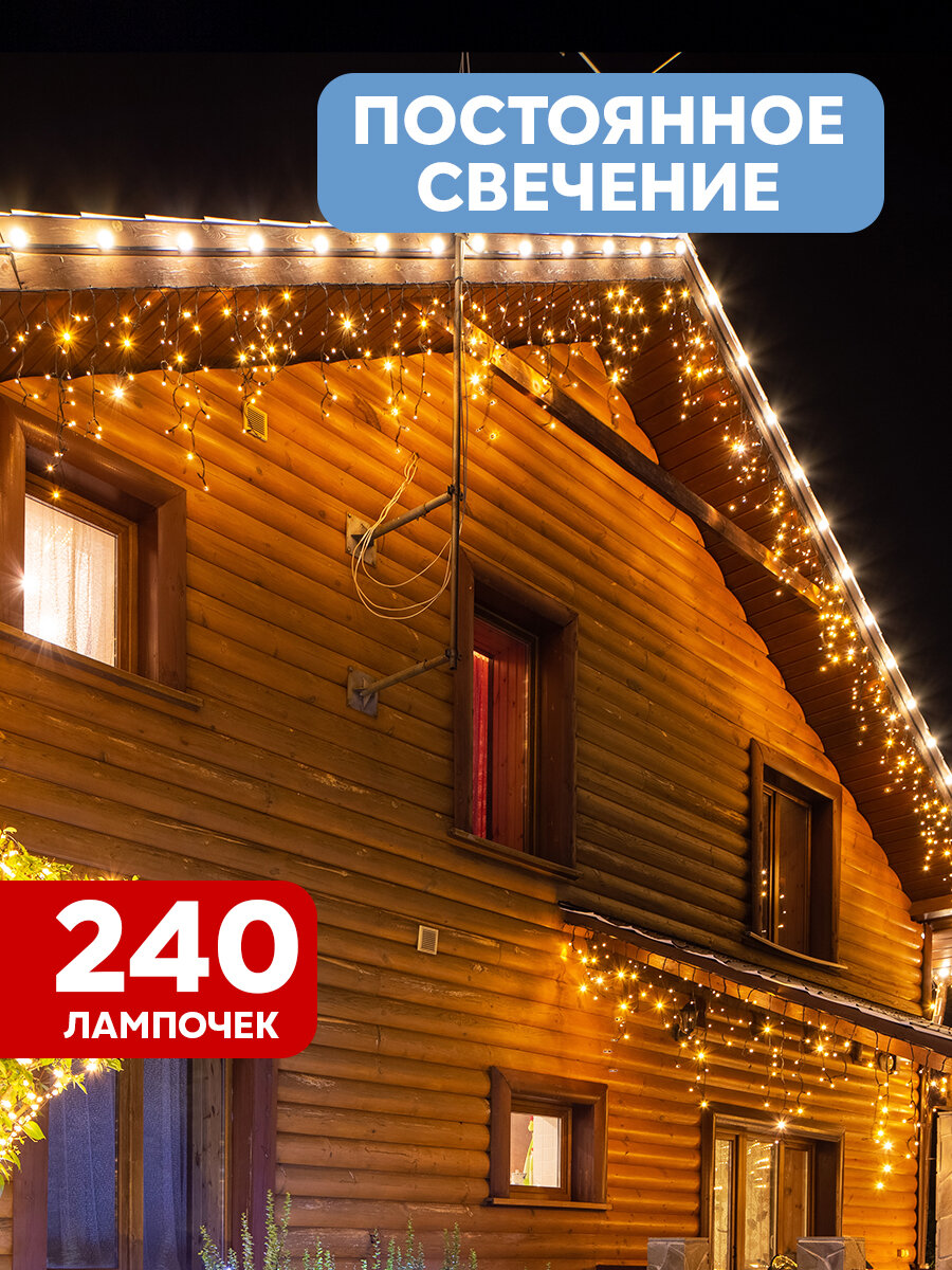 Гирлянда Neon-Night «Айсикл» (бахрома) светодиодный, 5,6 х 0,9 м, ч/п "каучук", 230 В, диоды теплый белый, 240 LED NEON-NIGHT 255-246