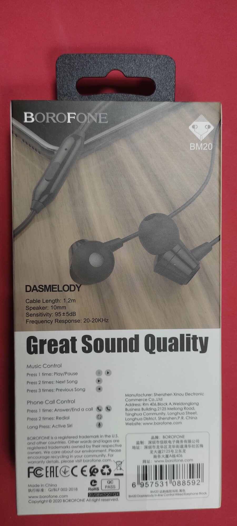 Гарнитура внутриканальная Borofone BM20 DasMelody, черный